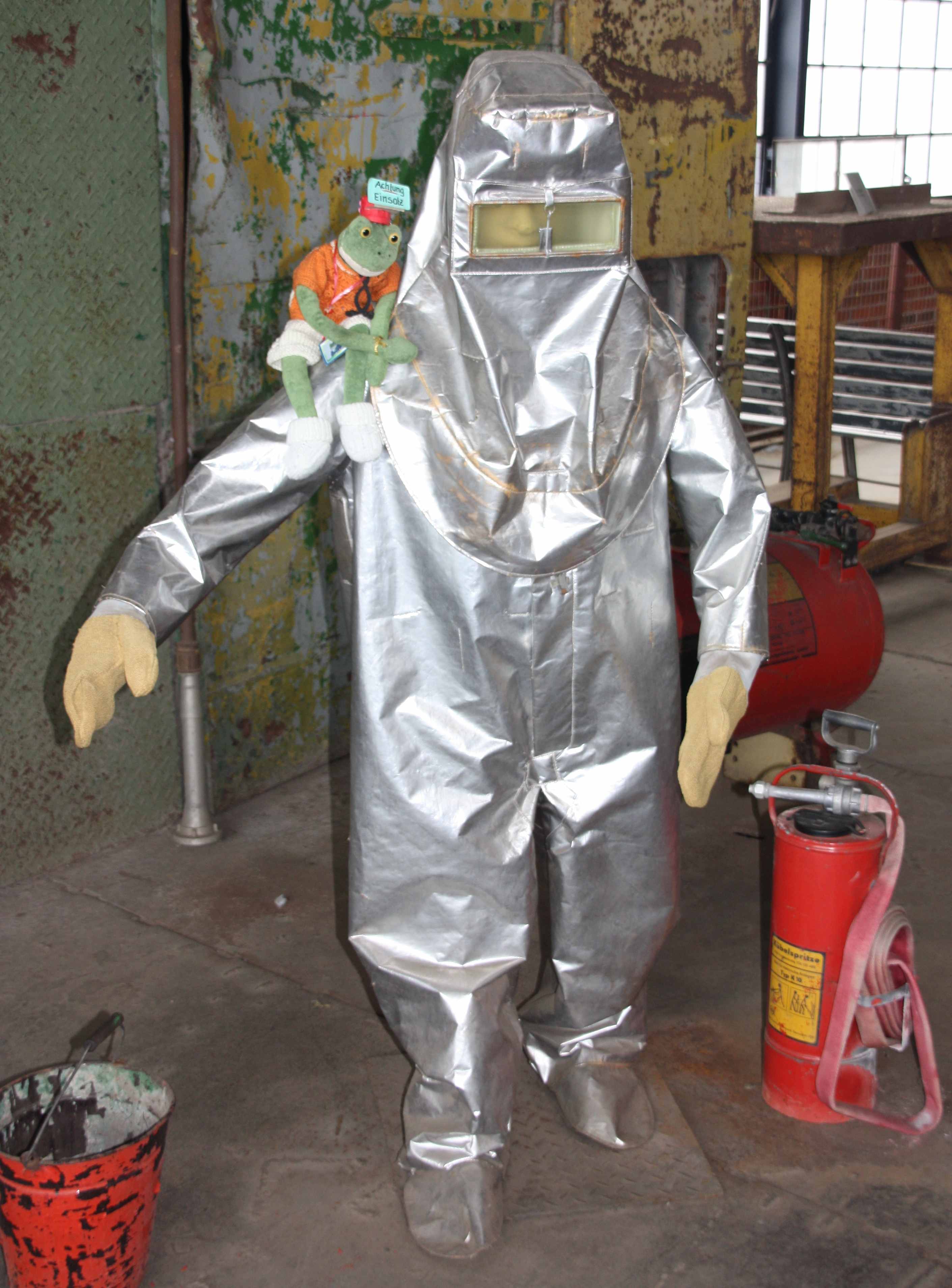 Richi schaut an seinem -Kollegen- herunter:"Das war bestimmt eine harte und schweißtreibende Arbeit als Schmelzer am Ofen,man kann sich das nur noch schwer vorstellen."