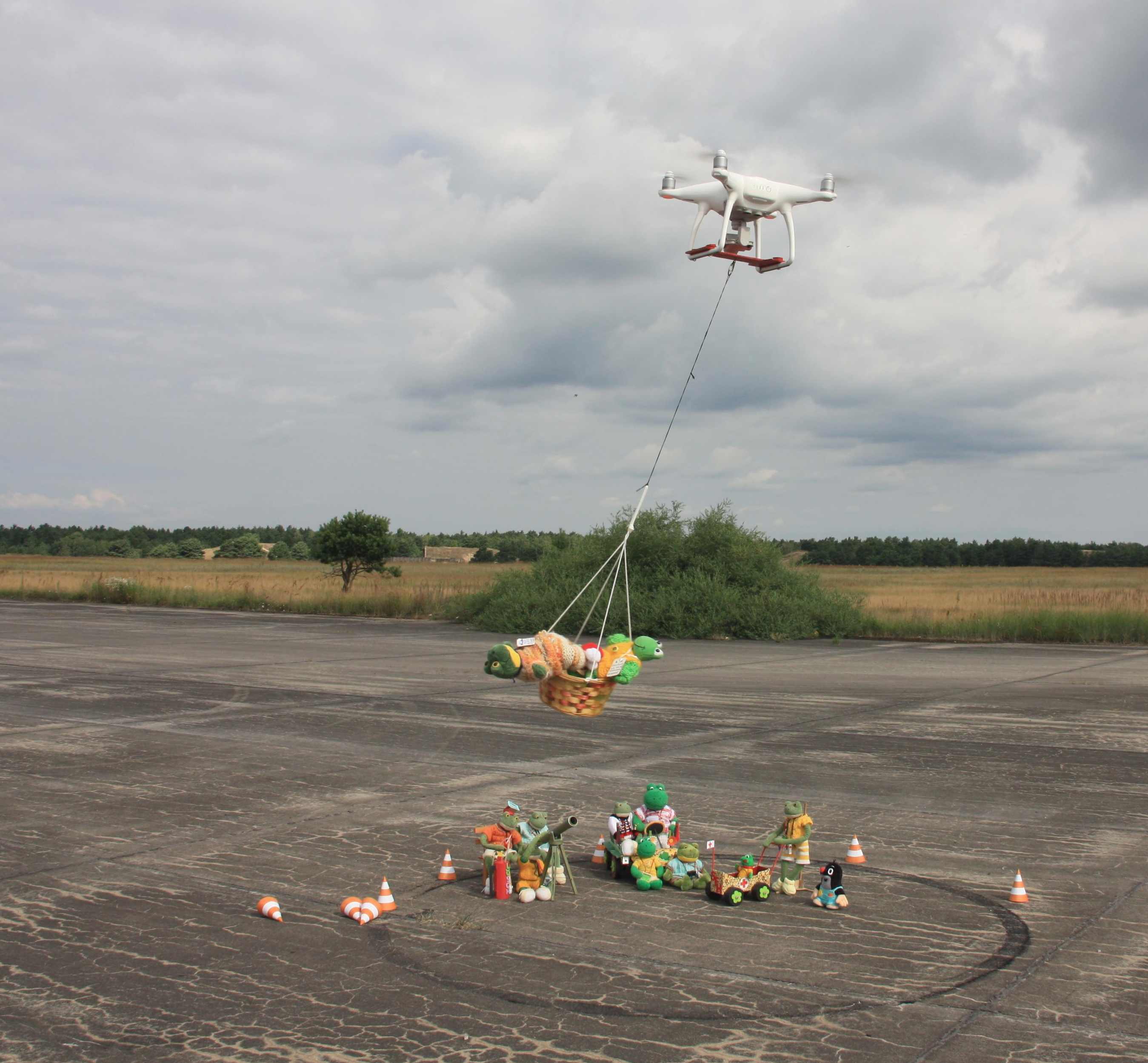 Gespannt verfolgt das Bodenteam den Landeanflug.Berti am Fernrohr ruft:"Ich habe euch im Visier, schön festhalten!"
