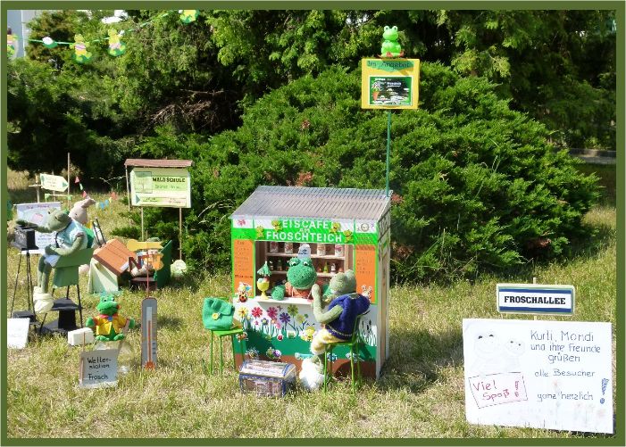 "Ich habe heute grünes Froscheis im Angebot, nur 40 Froschtaler", sagt Klein-Mondi."Dann nehme ich eine Kugel", antwortet Berti. "Bestimmt kommen heute viele Gäste", ist sich Klein-Mondi sicher.